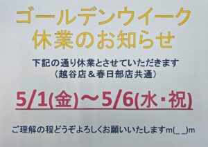 アーミーフィットネスジムは、5/1〜5/6までGW休業をいただきます。